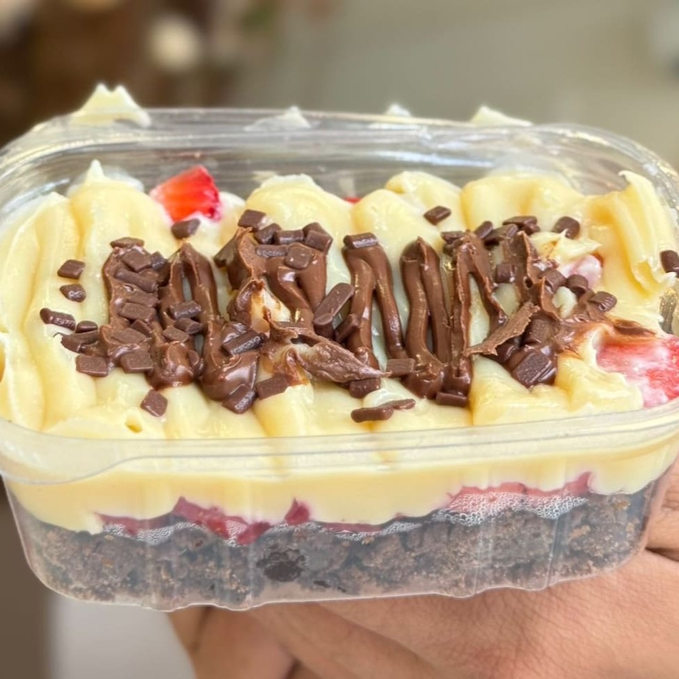 Contém: brownie, morangos, leite Ninho e Nutella.
