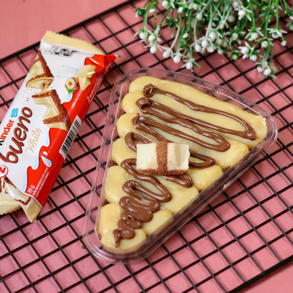 Uma fatia generosa, uma explosão de prazer! Nosso brownie super molhadinho serve de base para um recheio cremoso com pedaços de Kinder Bueno, coberto com uma camada abundante de Nutella que derrete na boca. Cada mordida é um encontro perfeito entre o chocolate intenso, a crocância do wafer e a cremosidade única do recheio de avelã. É impossível comer só um pedaço. Um verdadeiro delírio para os am
