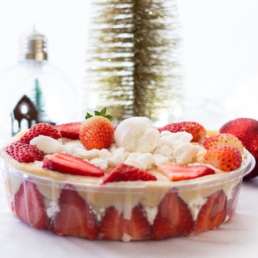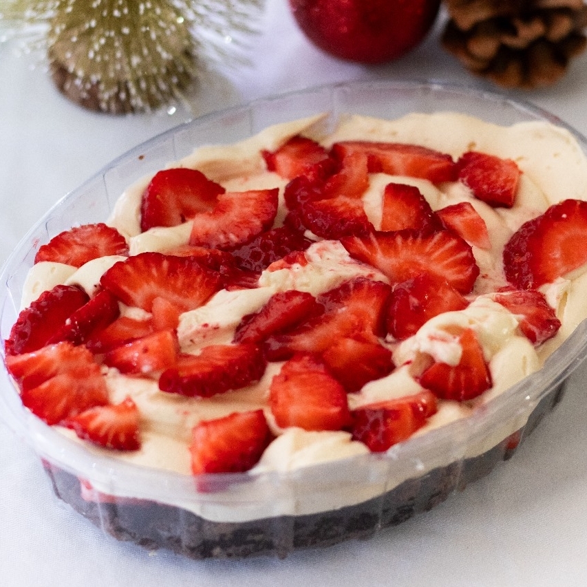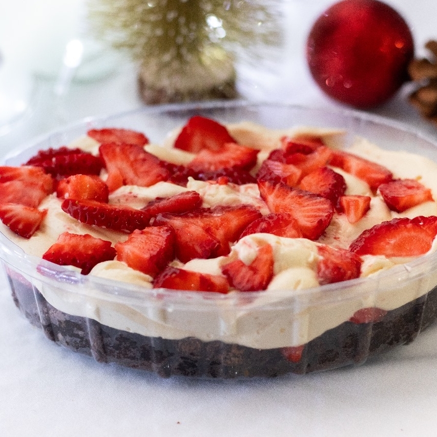A sobremesa dos sonhos! Uma camada delicada de biscoitos maizena, seguida por um creme de baunilha super cremoso com pedaços suculentos de morango fresquinho, tudo isso coberto por uma generosa ganache de chocolate ao leite que derrete na boca. Finalizada com mais morangos por cima, essa torta é montada em uma travessa de aproximadamente 600g — perfeita para compartilhar (ou não ). Uma explosão de sabor em cada colherada!