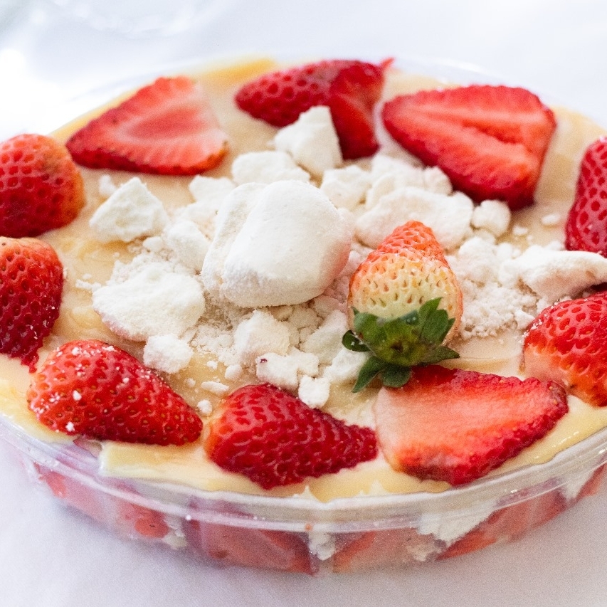 Experimente a delicadeza da nossa Torta Ninho com Morango: começamos com uma base repleta de morangos frescos e suculentos, cobertos por um creme de Ninho extremamente cremoso e equilibrado. Por cima, suspiros crocantes que adicionam textura e deixam o visual ainda mais encantador. Uma torta leve, saborosa e feita para conquistar em cada colherada!
