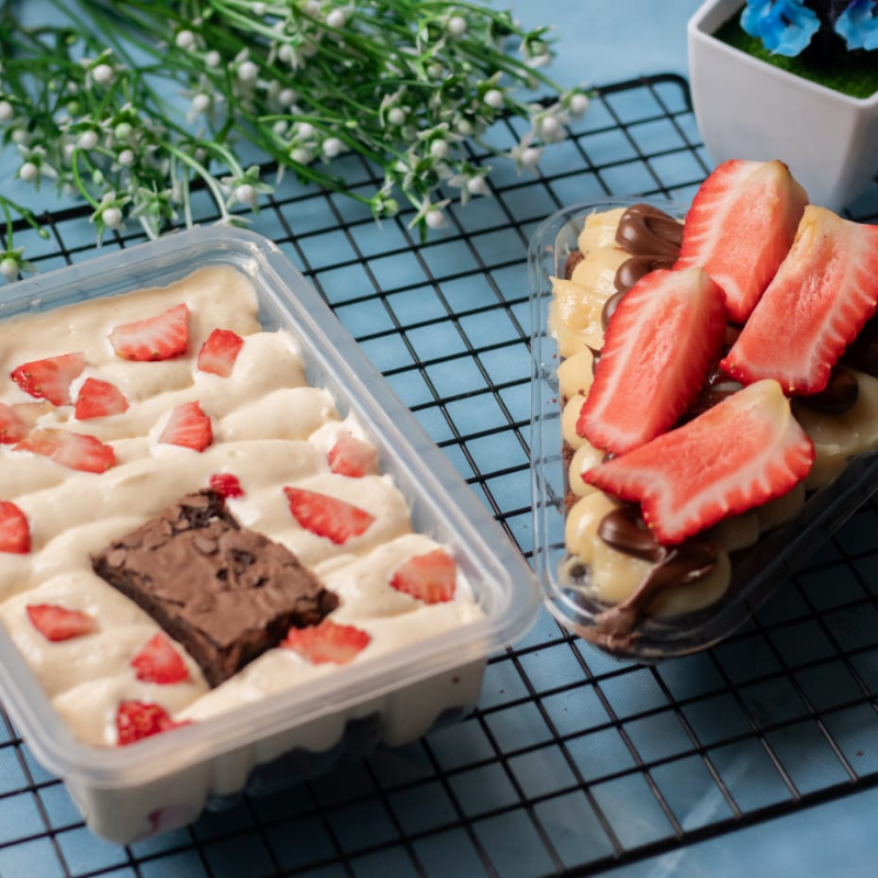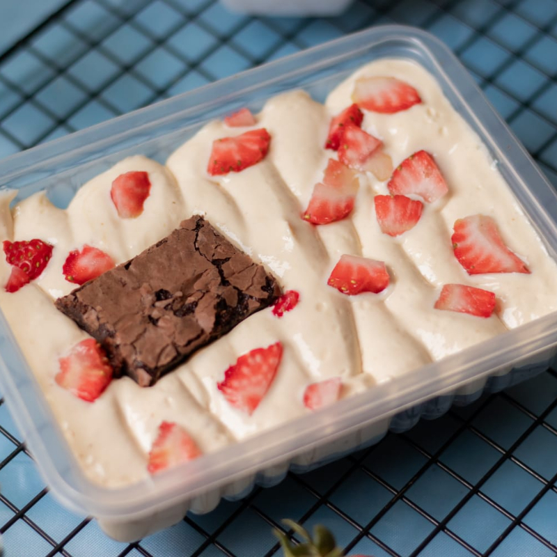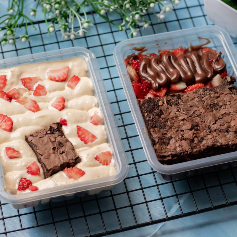 Uma combinação apaixonante em cada pedaço! Nosso brownie super molhadinho é recheado com um creme de Ninho incrivelmente leve, morangos frescos e suculentos, e finalizado com uma generosa camada de Nutella. O contraste entre o doce do leite Ninho, a acidez do morango e o chocolate cremoso cria uma explosão de sabores que derrete na boca. Doce, fresco e irresistível — é amor à primeira mordida!