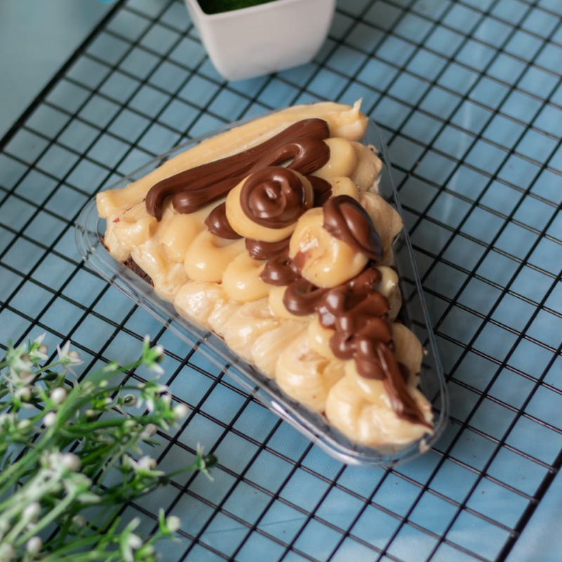 Nossa novidade, uma maravilhosa fatia de brownie com nosso incrível creme Ninho, fio de Nutella finalizado com dois brigadeiros gourmet.