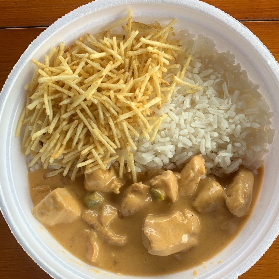 Arroz, frango ao molho, batata , cenoura , feijão, macarrão alho e óleo ( Sem Salada ) Frango cozido Frango com legumes
