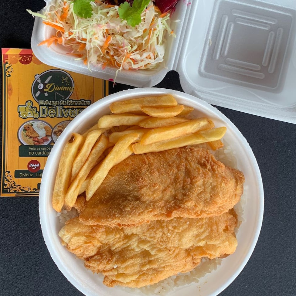Arroz soltinho com um delicioso feijão fresquinho e um generoso filé de tilápia e um limão , de acompanhamento você pode escolher batata frita ou macarrão alho e óleo. E uma salada do Dia Filé de tilápia Peixe tilápia Tilápia frita