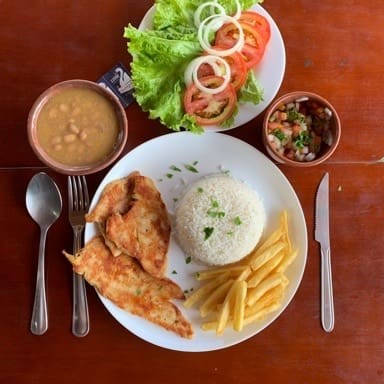 Arroz, feijão, file de frango , batata frita, Salada Filé de frango