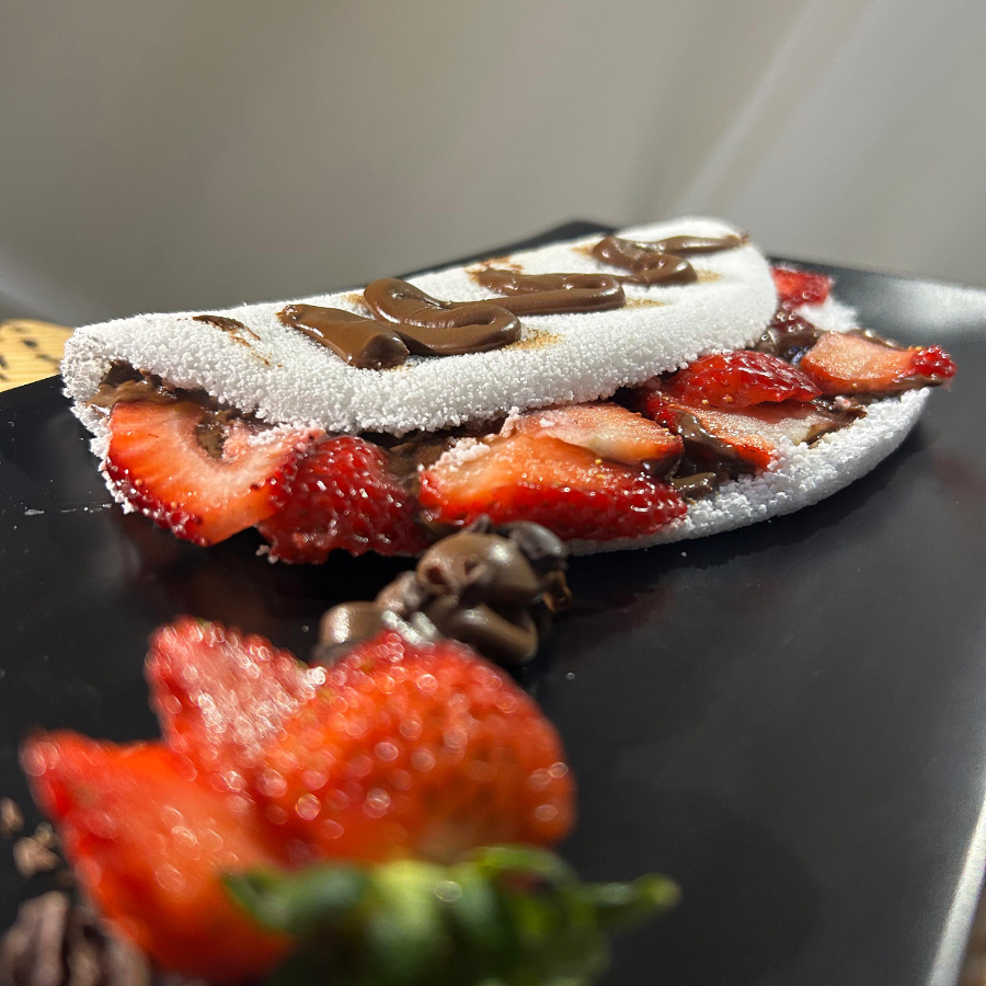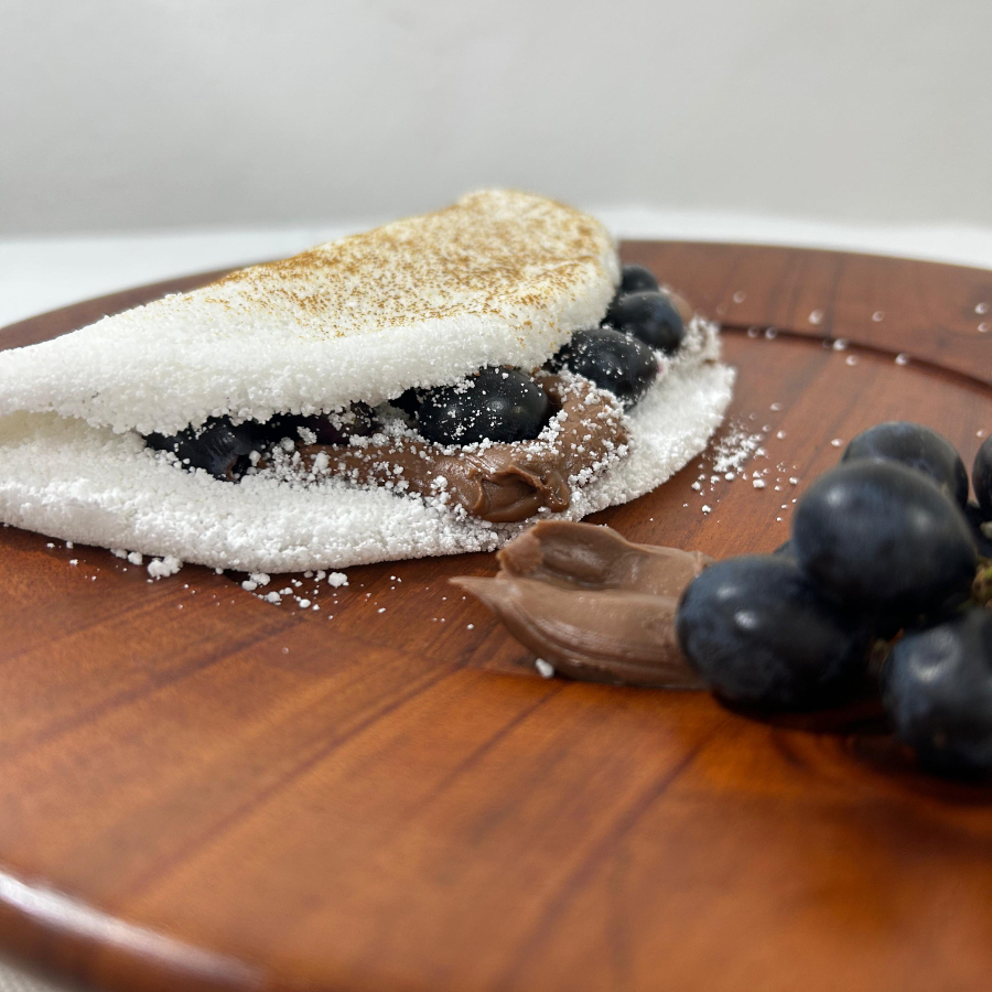 Massa de tapioca com chocolate ao leite e uva verde cortada