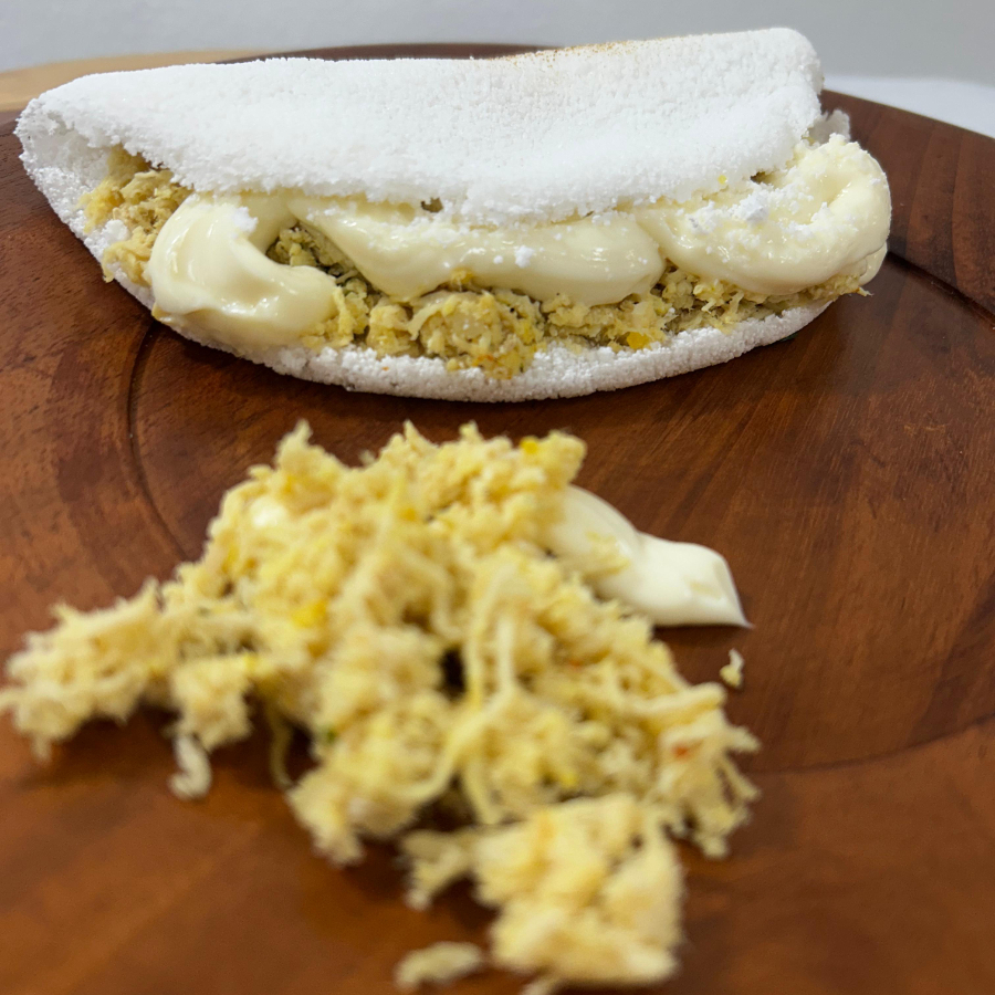 Massa de tapioca com calabresa, requeijão - tempero orégano