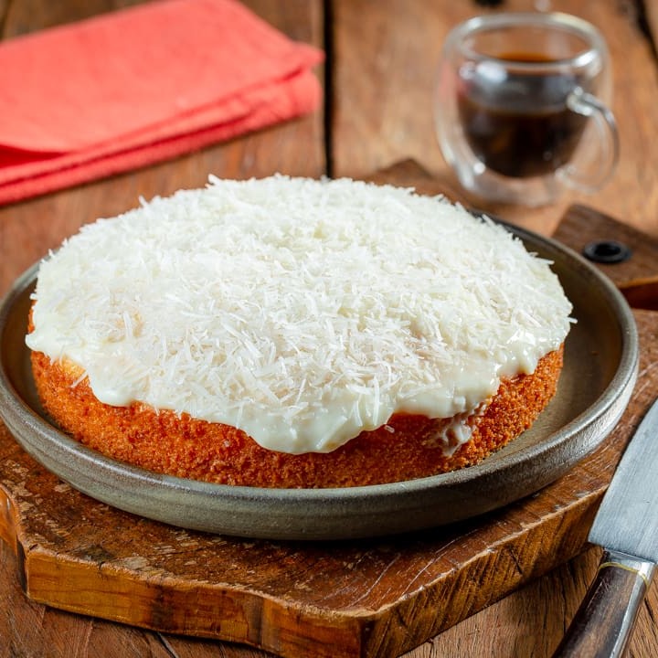 Para você que ama aquele bolo de coco molhadinho. Massa extremamente fofa e úmida, regado com calda de leite de coco e leite condensado e coberto com coco, um bolo saboroso para o seu Dia. 580 Grs