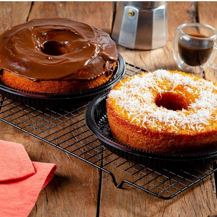 Fizemos uma promoção bem gostosa para você. Um bolo de Cenoura com cobertura+ 1 Bolo de fubá com um Baita descontão, você toma aquele bolo de café depois se delicia com uma sobremesa. Cada bolo pesa aproximadamente 580 grs