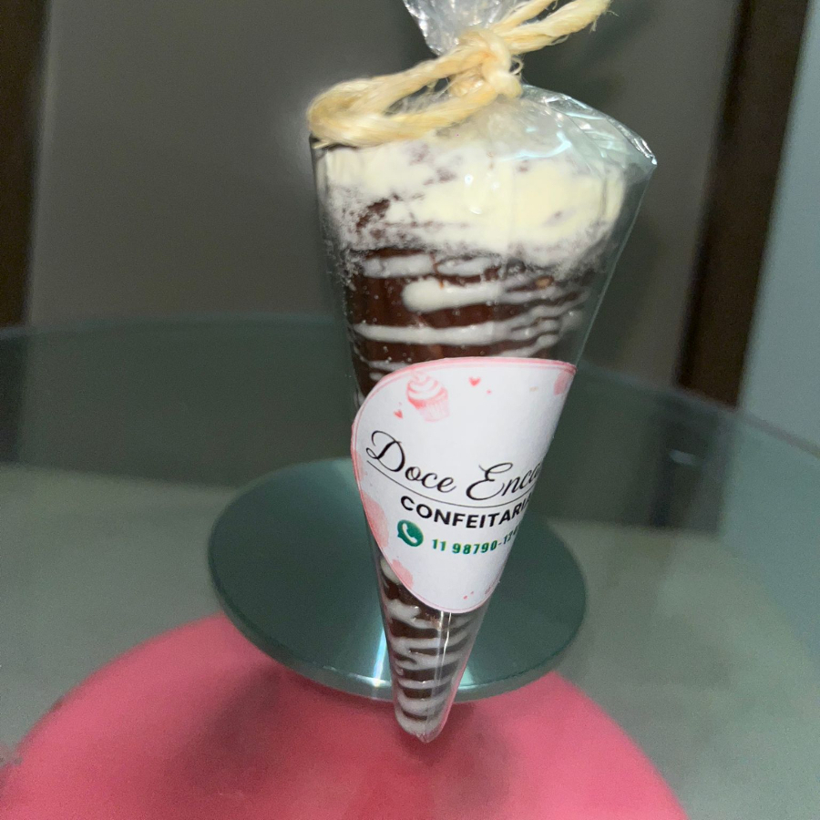 Delicioso Bolo no pote, Massa de Chocolate, Creme de Brigadeiro (Chocolate 70%), Granulado original.
