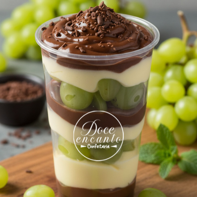 Creme de brigadeiro original, ninho, e uvas fresca.