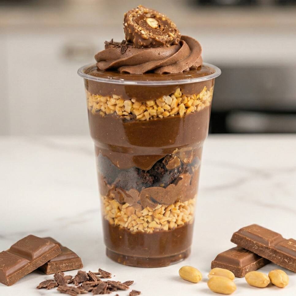 Delicioso creme de ferreiro,amendoins,brownie e creme de brigadeiro.