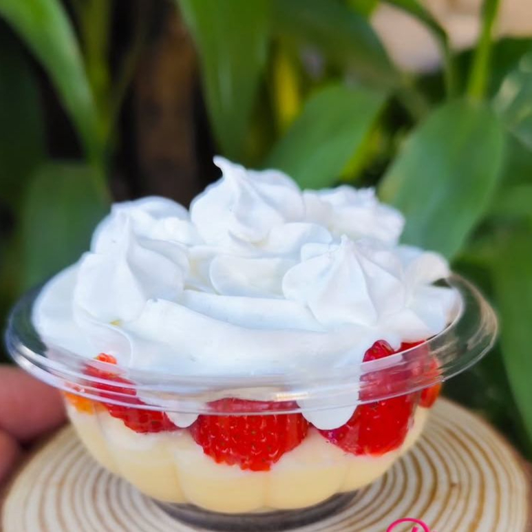 Delicioso bolo de Pote, Massa Branca, Morango Fresco, Creme de ninho,Granulado Branco Original.