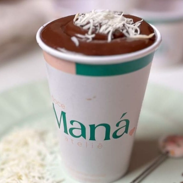 Mousse de Ninho, brigadeiro de Ninho, Nutella pura e nosso delicioso brownie artesanal. Copo de 300ml Atenção: a Doce Maná não altera e nem retira nenhum dos intens descritos. peso médio: 300g