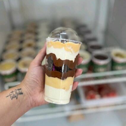Nosso famoso mousse de leite Ninho, brownie artesanal e brigadeiro ao leite, finalizado com granulado belga meio amargo.