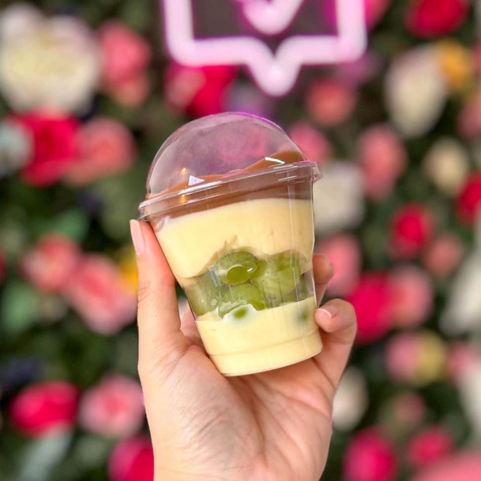 Delicioso recheio de brigadeiro de leite Ninho cremoso com uvas verdes sem caroço, finalizado com ganache de chocolate nobre e granulé. 150ml Obs: não alteremos nem retiramos nenhum item.