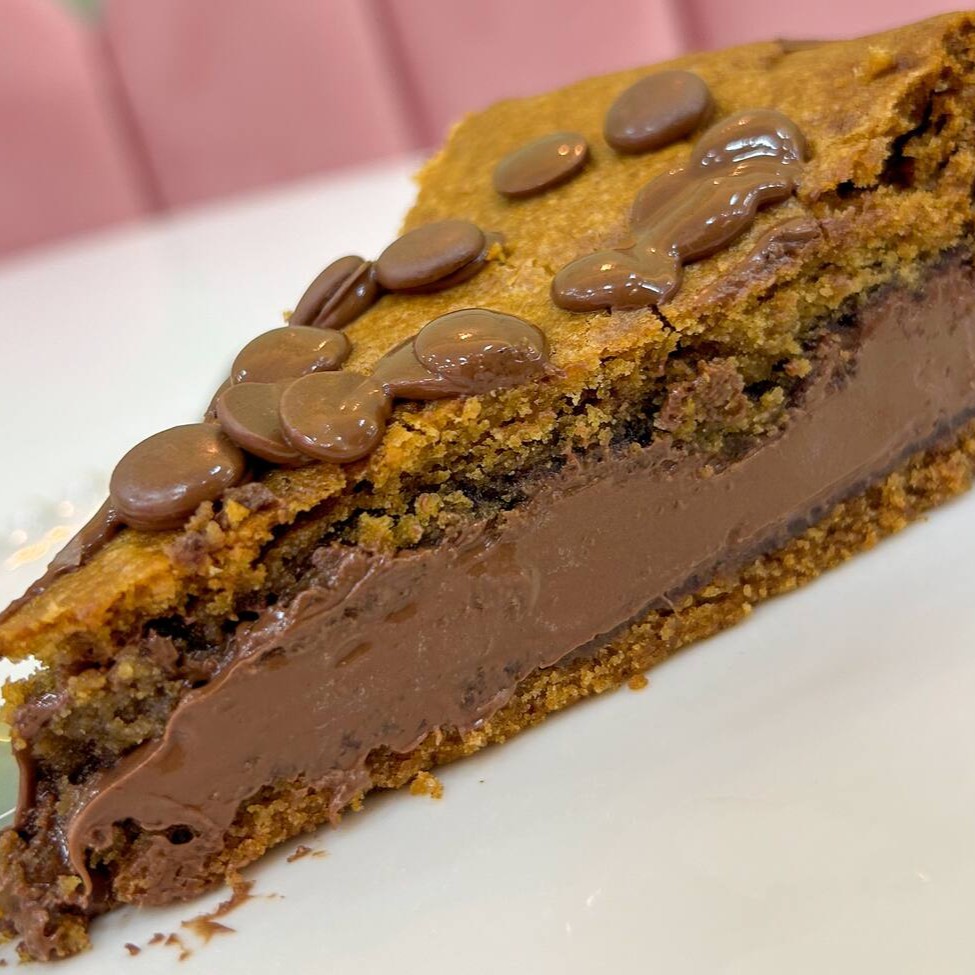 Torta com massa de cookie, recheada com Nutella Pura e finalizada com gotas de chocolate nobre.