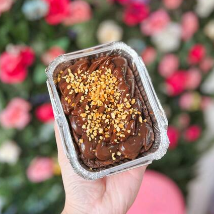 Delicioso brownie coberto com brigadeiro cremoso, Nutella irresistível e amendoim crocante, uma explosão de sabores e texturas. 1 unidade