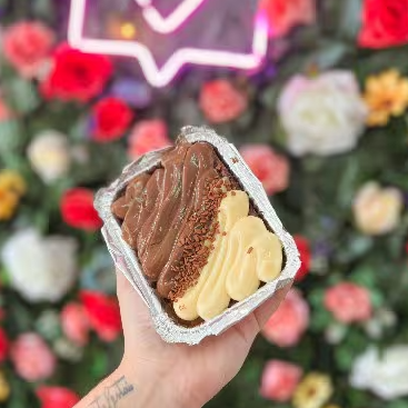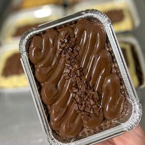 Delicioso brownie coberto com brigadeiro ao leite e brigadeiro de Ninho, uma explosão de sabores e texturas. 1 unidade
