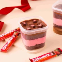 Ele não pode faltar no nosso cardápio! Massa fofinha de Chocolate com recheio de Mousse de Morango, finalizado com Ganache de Chocolate e coberto com Bombons Stikadinho. A combinação perfeita que você precisa experimentar! 200gr