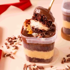 A mais mais! Nossa Marmitinha Brownie ocupa o topo os produtos mais vendidos da loja. Uma combinação perfeita do nosso Brownie Tradicional, preparada com Chocolate Nobre meio amargo, coberta com generosas camadas de Creme Ninho, Brigadeiro de Colher Cremoso e finalizada com Granulado ao leite Callebaut. Ela é puro prazer. 180gr
