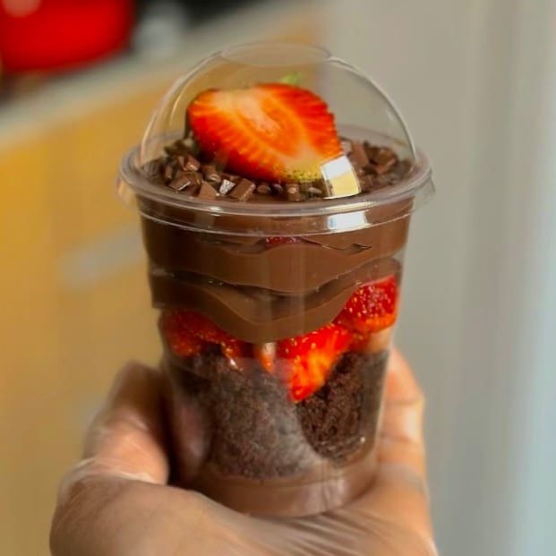 Trouxemos um copo da categoria copo da felicidade com recheio de brigadeiro gourmet e morangos frescos cortados na hora e para acompanhar um brownie esplêndido , esse copo de 150 ml traz muita doçura para você serve até 1 pessoa. #copodafelicidade #morangos #brigadeiro #regional