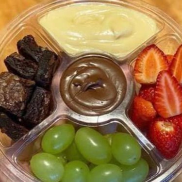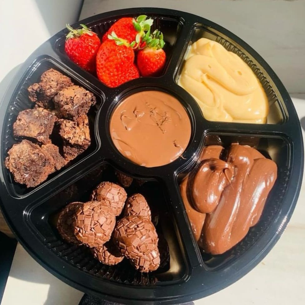 A Petisqueira Fondue da categoria Brownies é uma magnífica combinação de sabores. Inclui um brownie irresistivelmente macio, generosamente recheado com um brigadeiro cremoso e um surpreendente recheio de Ninho, que proporciona um contraste de sabor único. Acompanha ainda morangos frescos, cuidadosamente cortados na hora para garantir sua máxima frescura, e suculentas uvas verdes sem sementes. Uma verdadeira sinfonia de sabores que irá deleitar o seu paladar.