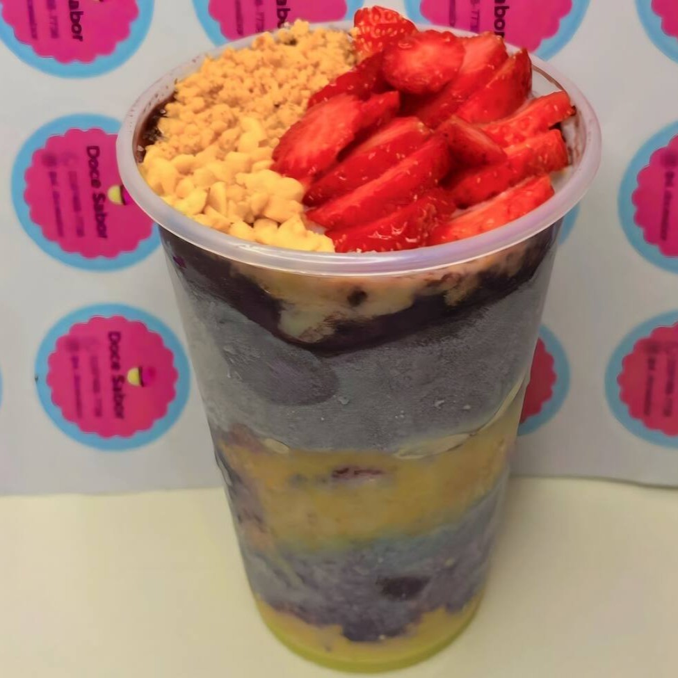 Desfrute de um delicioso açai de aproximadamente 550 ml o prato inclui uma generosa porção de 4 adicionais gratuitos para completar sua experiência saborosa.