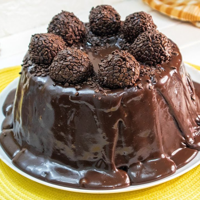 Bolo Vulcão De Chocolate Com Brigadeiro (serve 10 Pessoas)