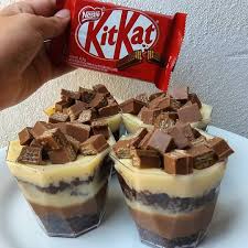 Nosso bolo no pote de Kit Kat é a explosão de sabor que você procura! Camadas de massa fofinha de chocolate , intercaladas com um recheio super cremoso de brigadeiro, pedacinhos crocantes de Kit Kat e uma irresistível cobertura. Uma sobremesa perfeita para qualquer hora!