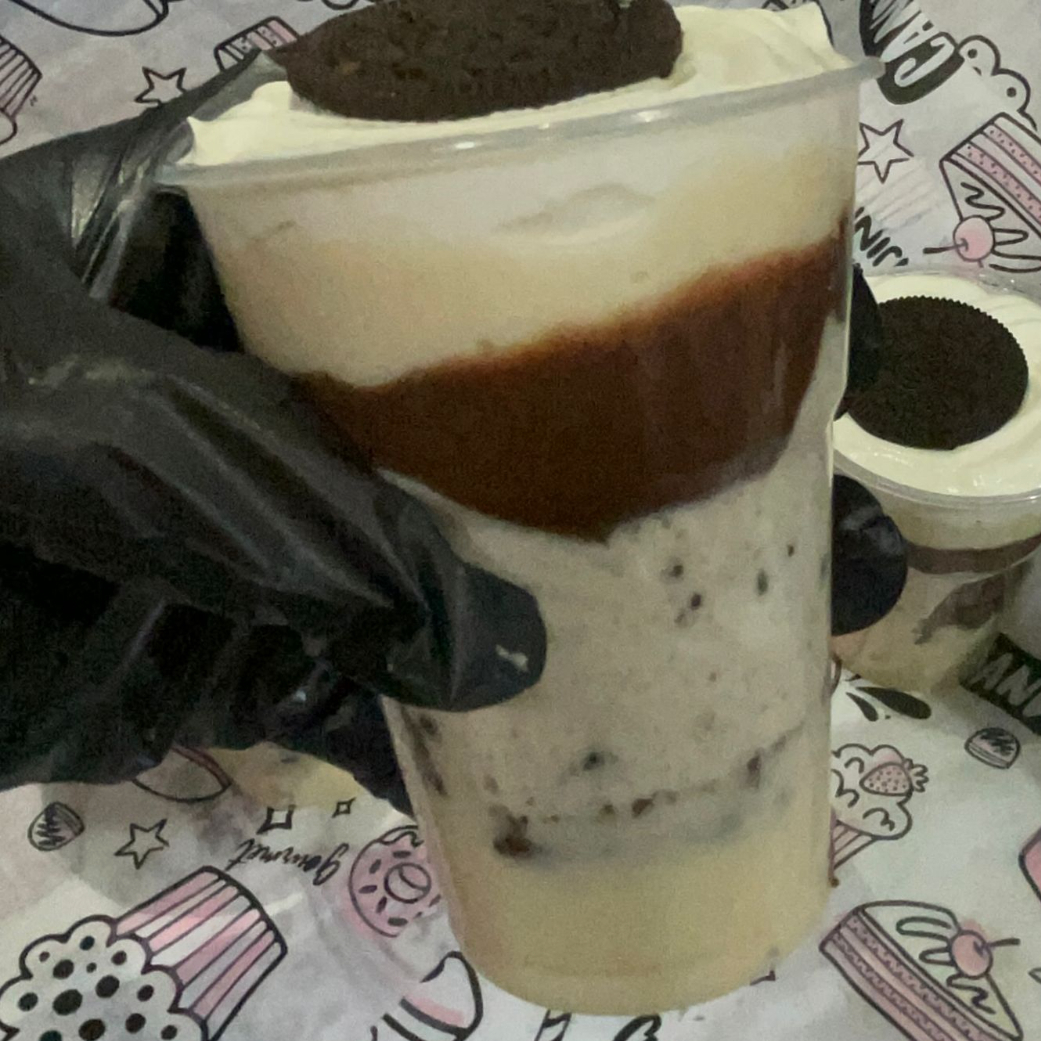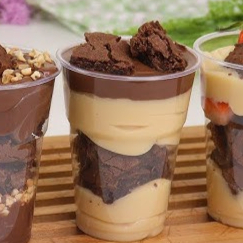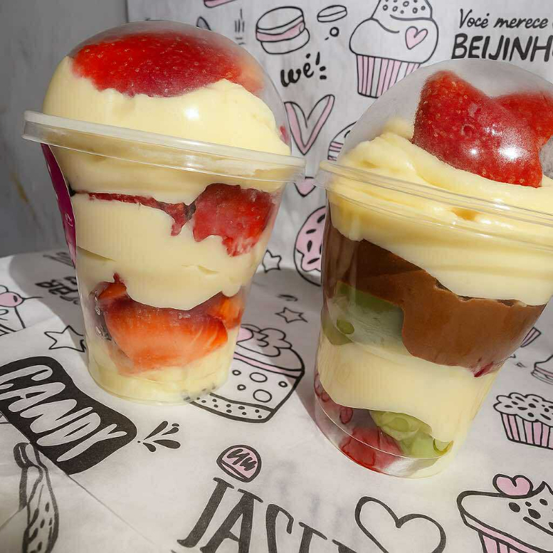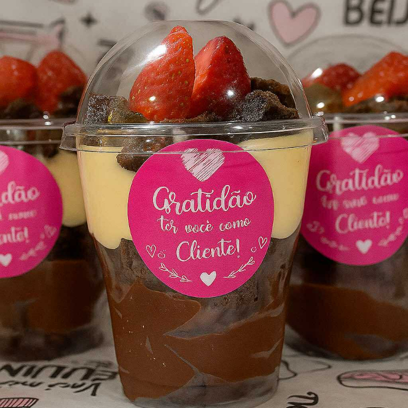 300 ml monte seu copo 4 opções temos ninho, brigadeiro, avelã, morango,uva, brownie, pistache, sonho de valsa,