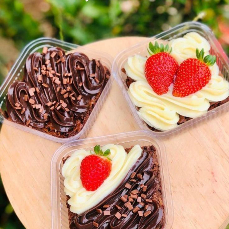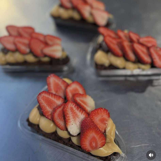 Tortinha De Brownie Com Doce De Leite E Geleia De Morango