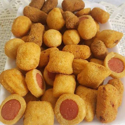 Coxinha risole bolinho de queijo enroladinho de salsicha