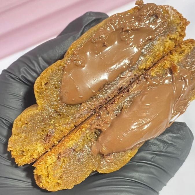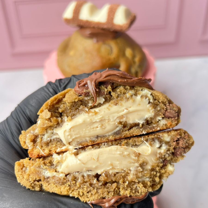 Massa de cookie no ponto certo, crocante por fora e macia por dentro, recheado com muita Nutella, finalizado com brigadeiro 100% cacau para trazer aquele equilíbrio e mete perfeito!! 😍😮💨