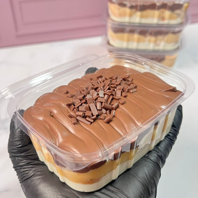 Mega Pave de creme de ninho, brigadeiro de ninho bem cremoso, bolacha maisena, muitaaa Nutella pura, e granulado nobre ao leite.