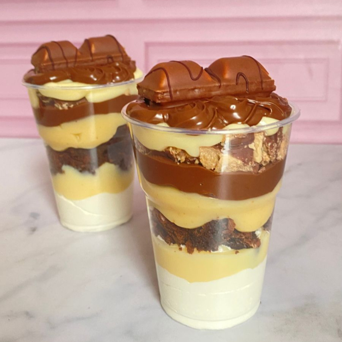 Mousse de ninho, brigadeiro de ninho, brigadeiro de kinder bueno, pedaços de brownie, nutella, finalizado com kinder bueno. 😮💨