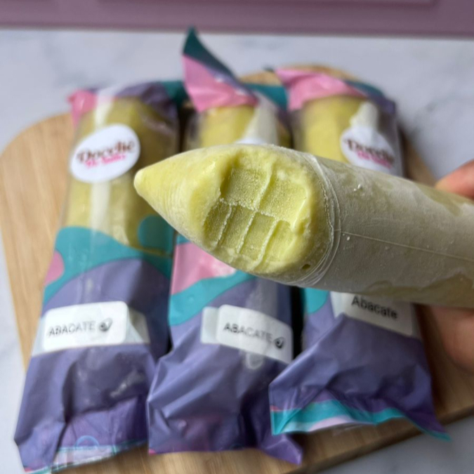 Geladinho gourmet bem cremoso de abacate, feito com a própria fruta.
