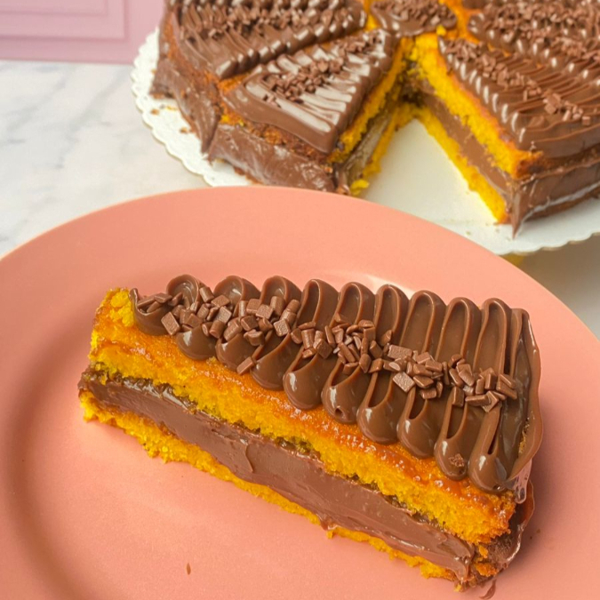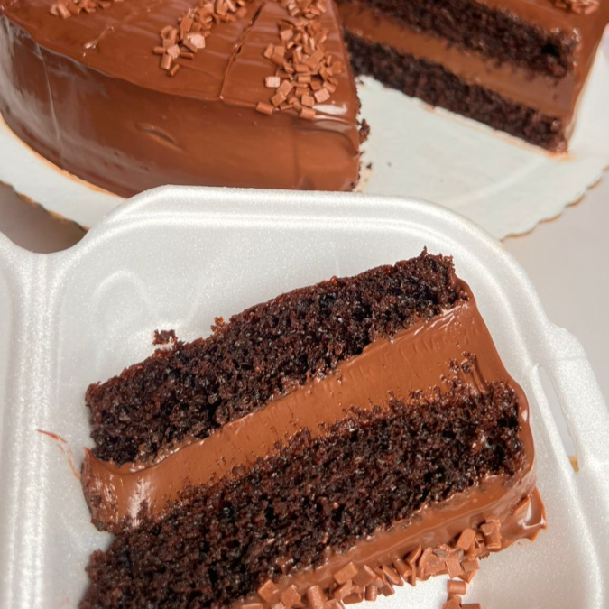 Deliciosa fatia de chocolate, recheada com brigadeiro 50% cacau, coberta com ganache de chocolate meio amargo, finalizada com granule nobre.