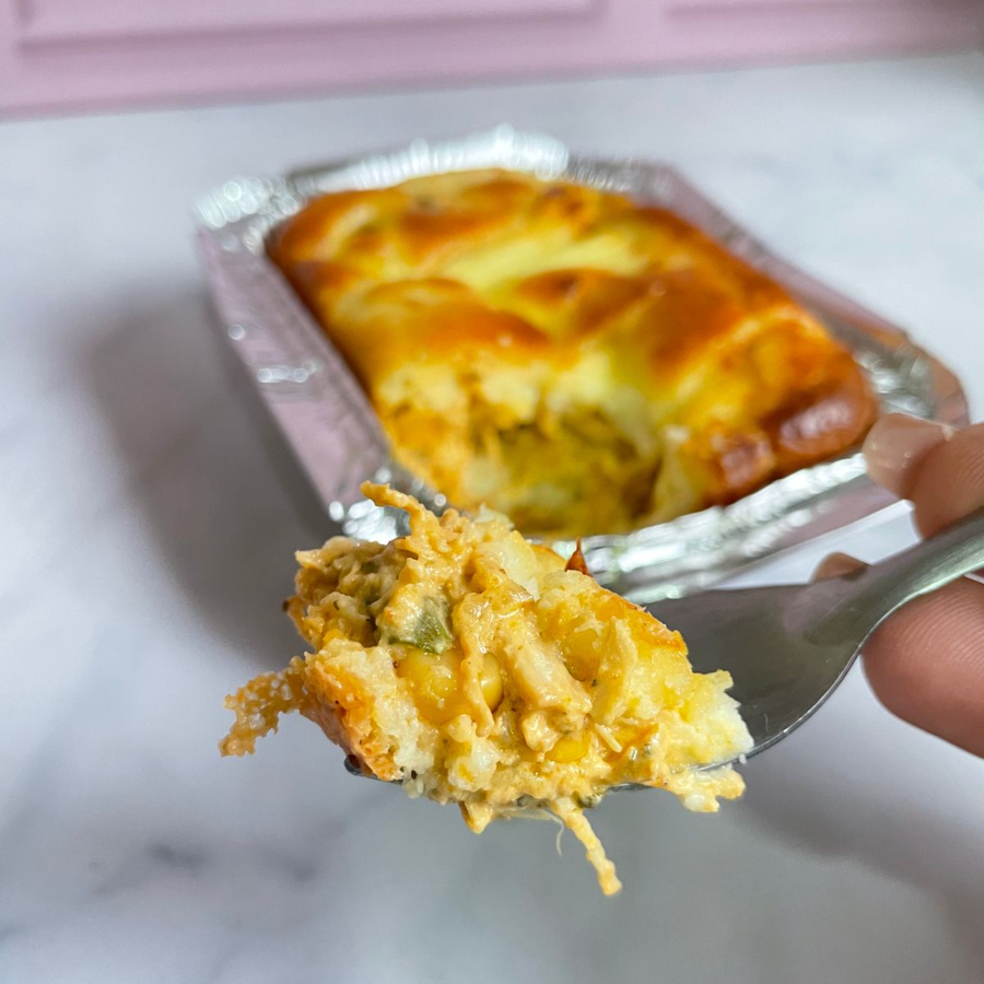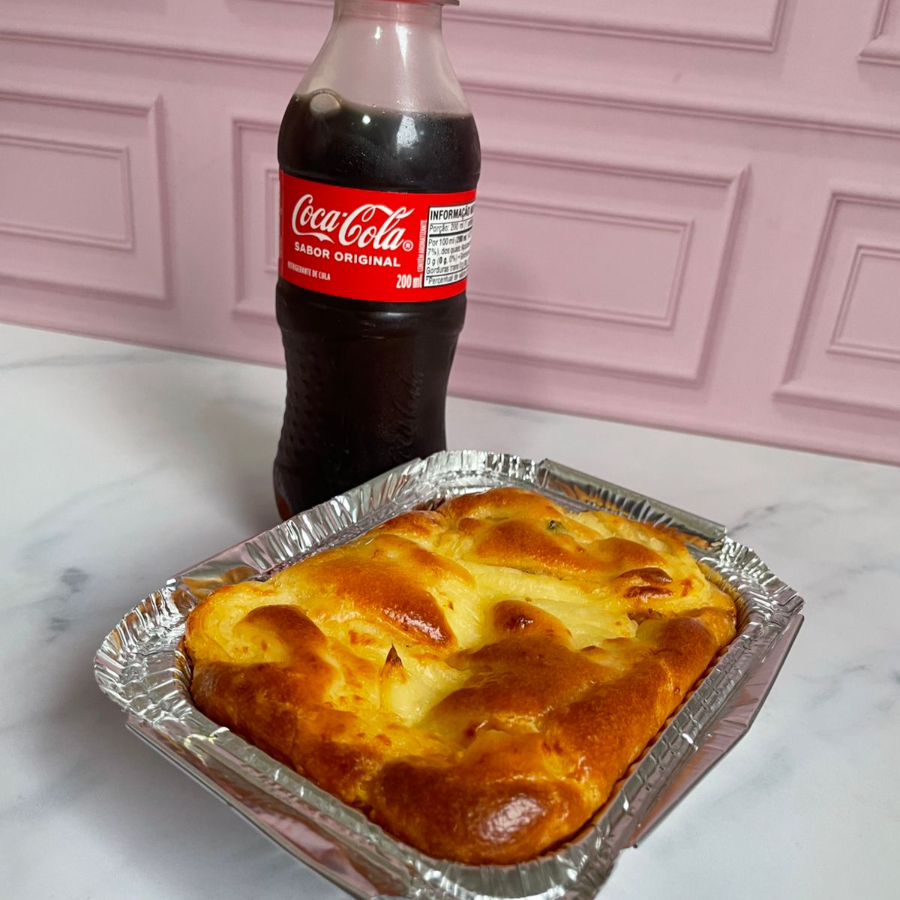 Torta de cremosa de frango com catupiry original e mini coca para acompanhar.