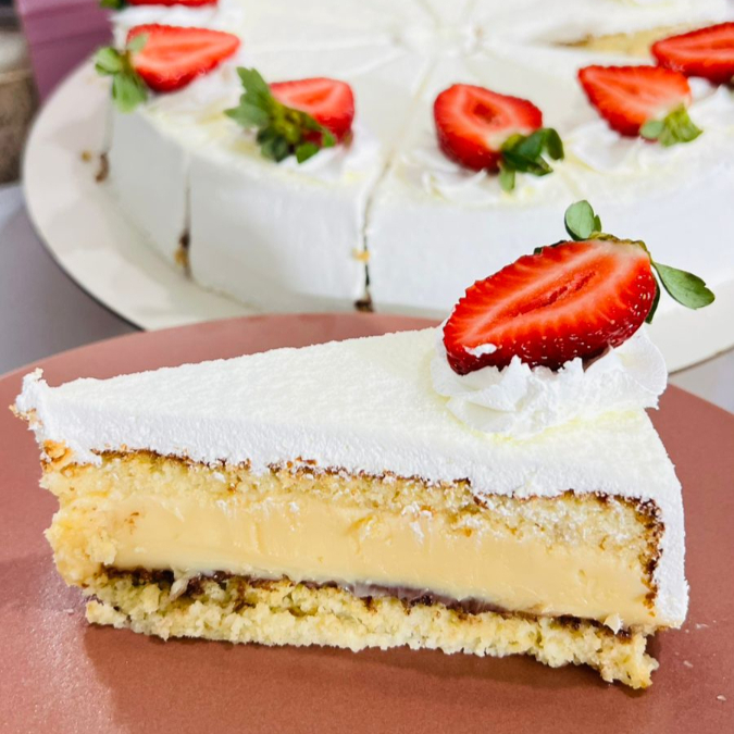 Massa branca de baunilha, com brigadeiro de ninho e Nutella pura, finalizada com chantininho, ninho polvilhado e morango fresco.