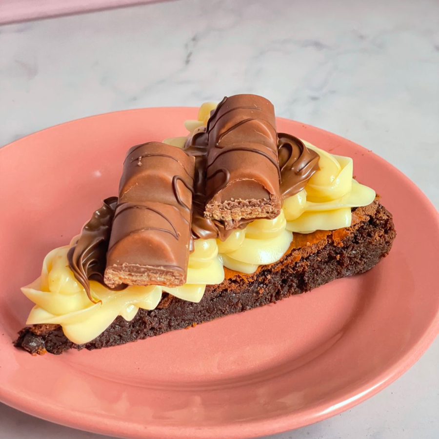 Nosso brownie maravilhoso, com brigadeiro de ninho, brigadeiro de kinder, bastante nutella, finalizados com kinder bueno.