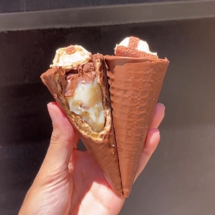Casquinha banhada na cobertura blend, recheada com Nutella pura.