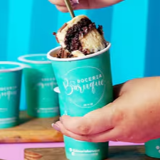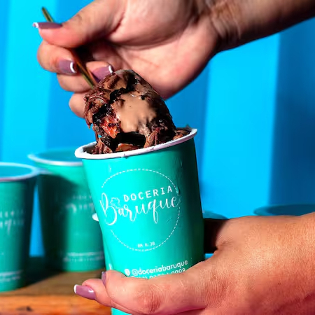 Coxinha de brigadeiro com morango, amendoim e Nutella.