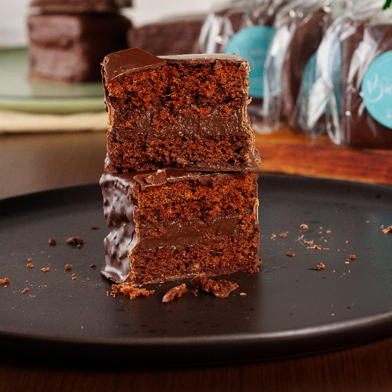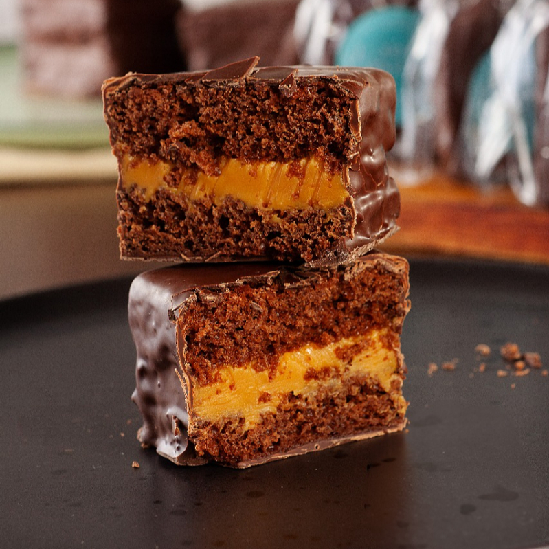 Massa de brigadeiro gourmet recheado com "Stikadinho" finalizado com confeito belga callebaut.