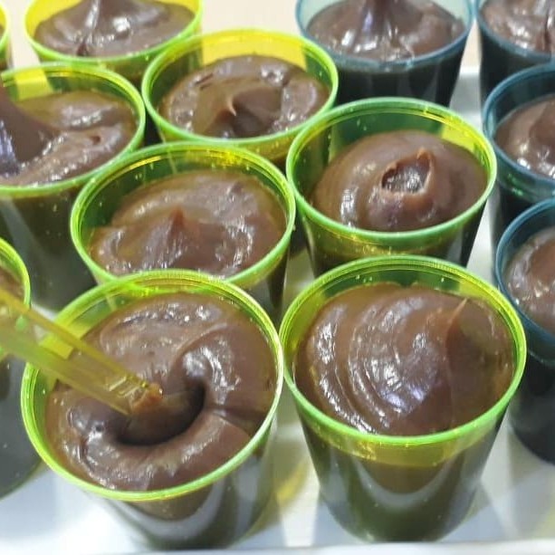 Brigadeiro mole no copinho. Aproximadamente 25g.