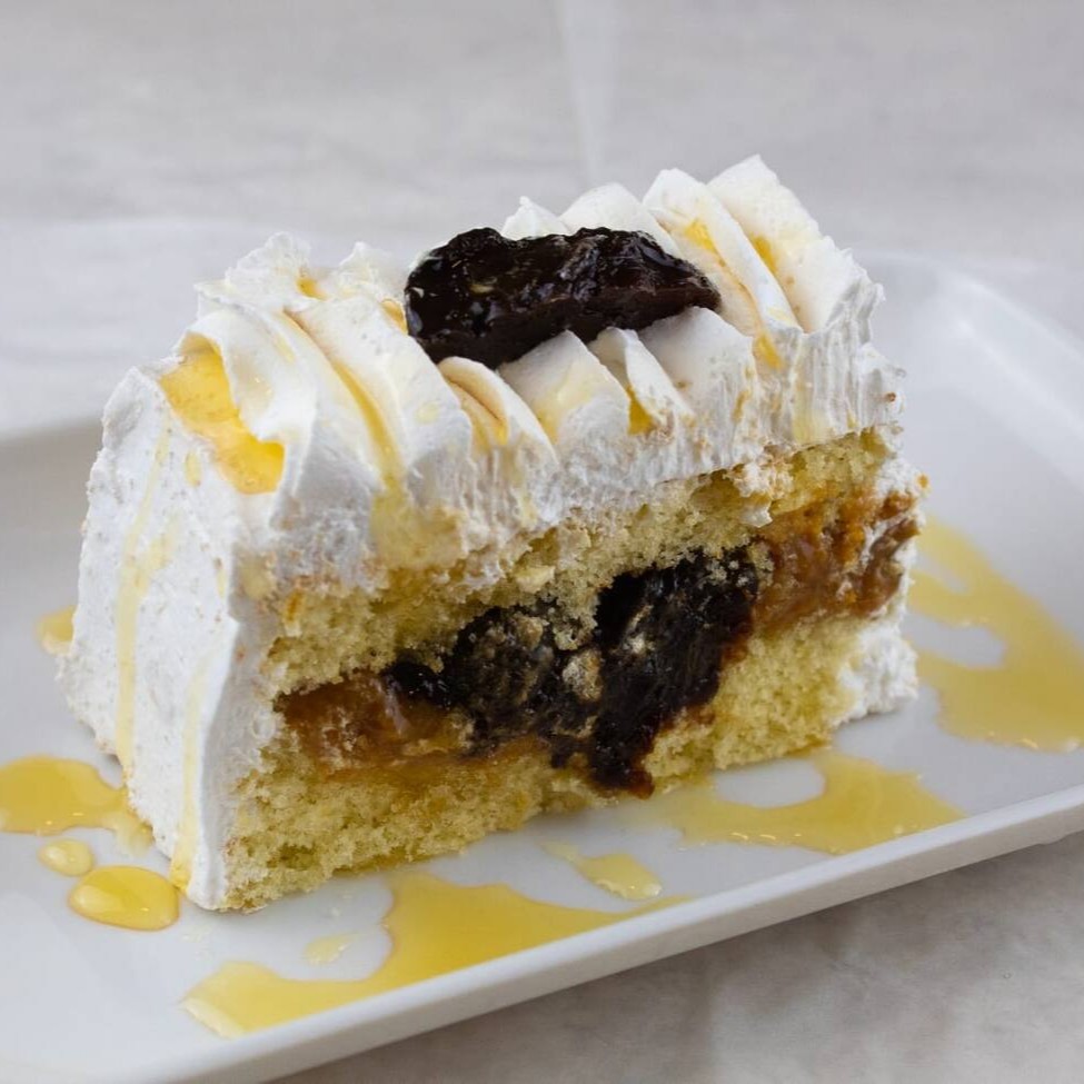 Delicie-se com nosso Bolo de Ameixa com Doce de Leite, uma joia da categoria 'Bolos e Tortas (Individuais)'. Este prato é um sonho feito realidade com sua massa branca suave e extremamente macia, meticulosamente preparada por nossos mestres padeiros. O recheio, uma indulgência por si só, é um doce de leite irresistivelmente cremoso e deliciosamente doce que harmoniza perfeitamente com a acidez equilibrada da ameixa. É uma combinação incrivelmente saborosa e requintada que promete conquistar até os paladares mais exigentes.