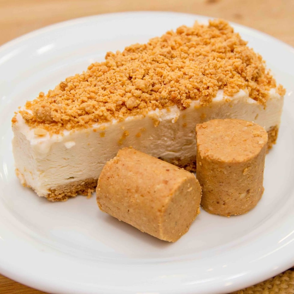 Massa crocante, recheio de cheesecake tradicional e cobertura de farofa de paçoca.