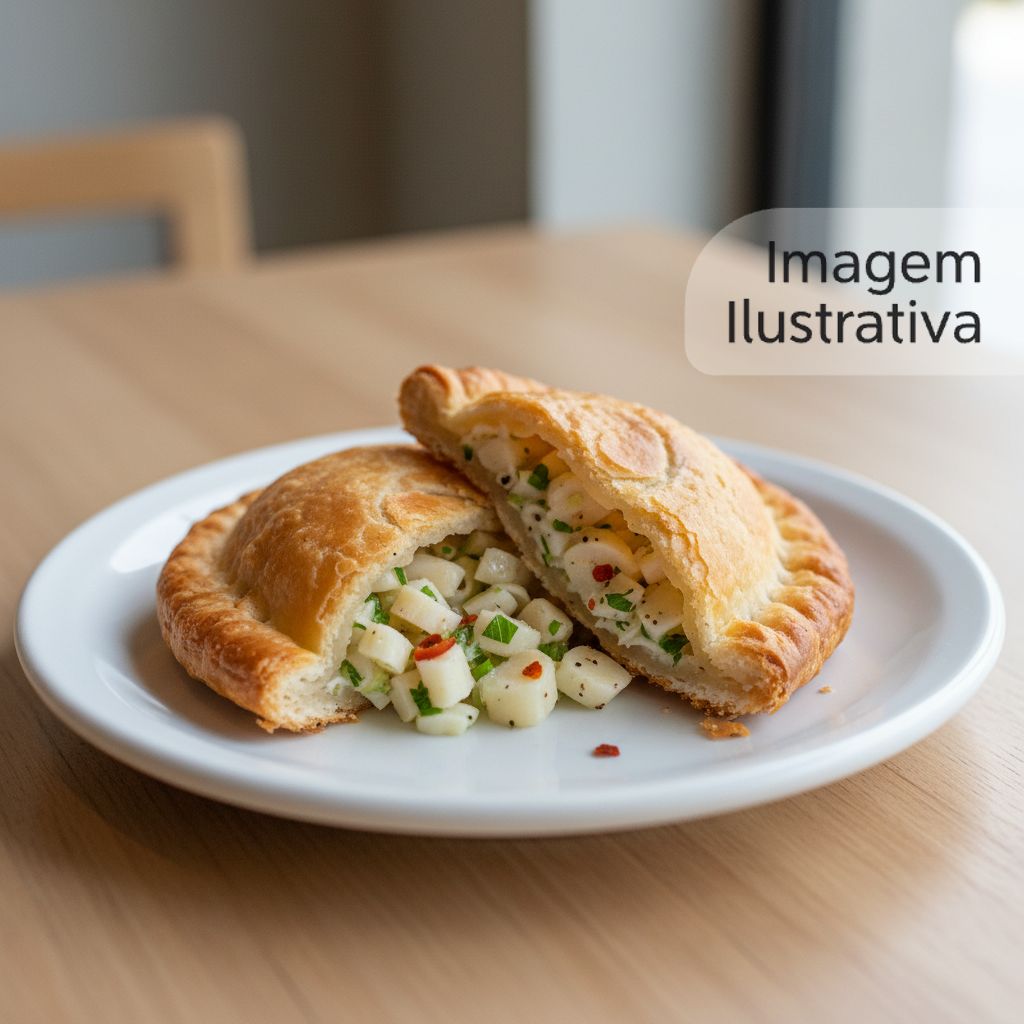 Pastel assado recheado com palmito picado e temperos especiais.