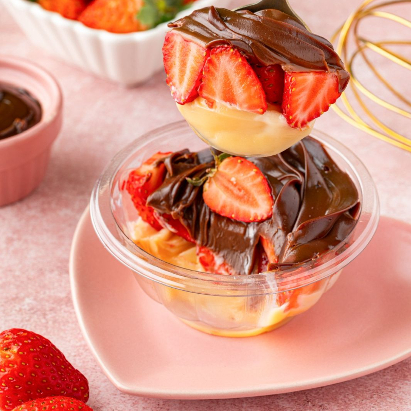 Brigadeiro de Panela Macio + Morangos frescos Selecionados + Granulado Nobre