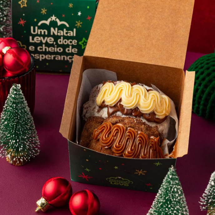 Rabanada tradicional preparada com pão macio, embebido em leite e ovos, frita até ficar douradinha e finalizada com açúcar e canela. Disponível nas versões recheada com doce de leite ou recheada com Ninho e Nutella.
